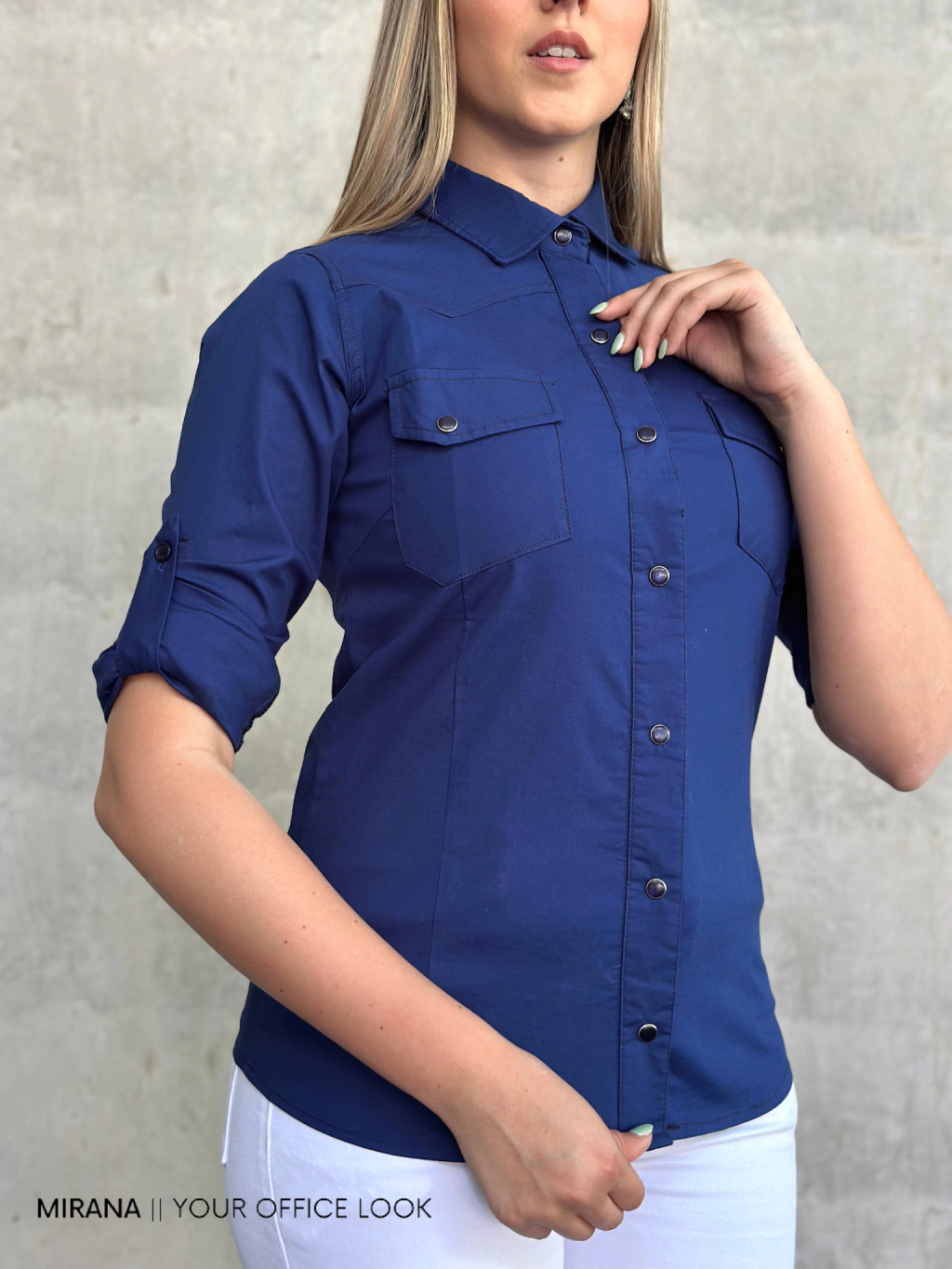 La camisa entallada LADYBOSS está pensada para mujeres que marcan presencia. Su diseño clásico se renueva con un detalle distintivo y funcional: broches a presión a tono, que reemplazan los botones tradicionales y aportan un toque moderno y minimalista. Confeccionada en poplin elastizado, garantiza un calce cómodo y favorecedor para acompañarte en todos tus desafíos.