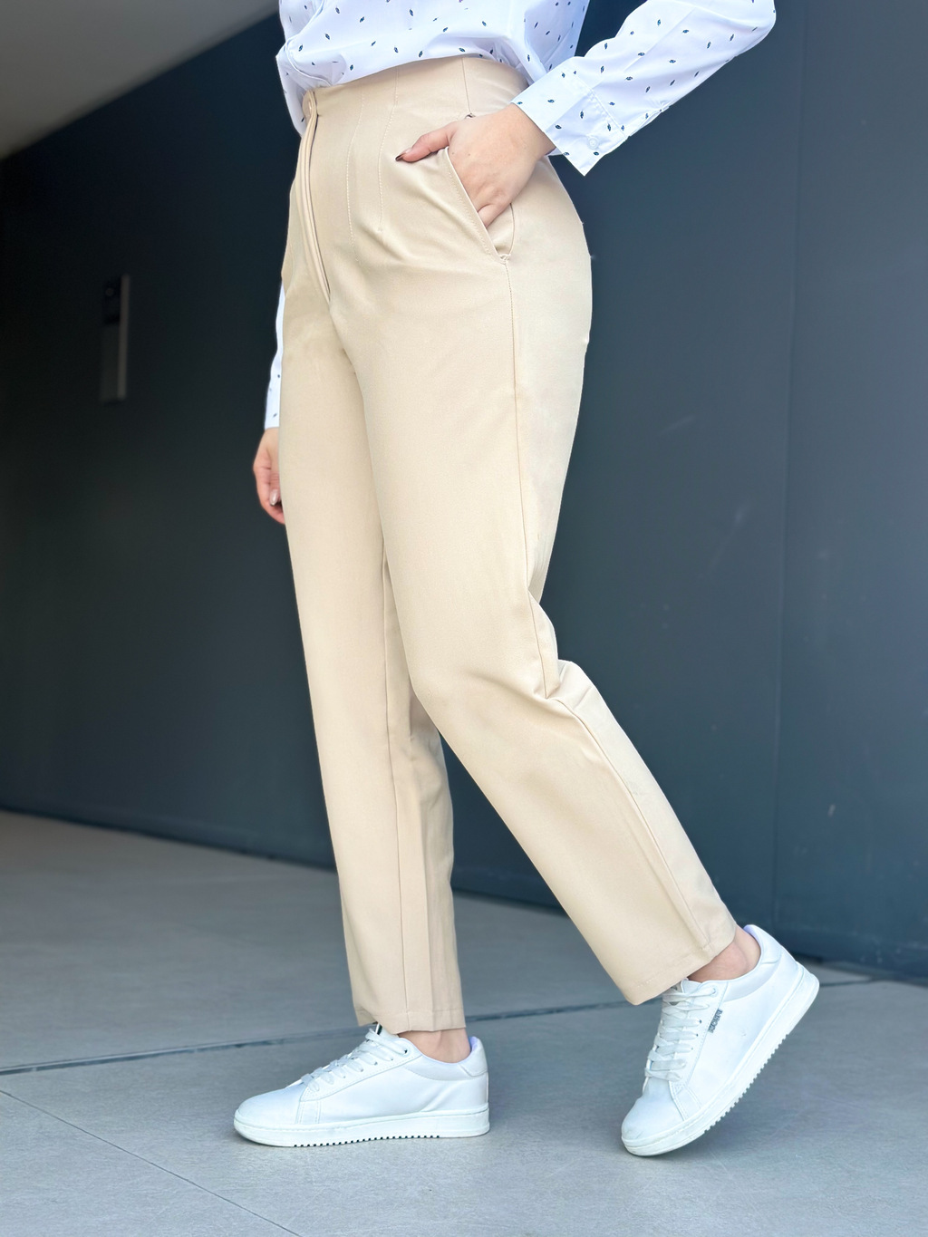 Su diseño clásico con cintura alta y pierna recta lo hace versátil para oficina o salidas más relajadas.